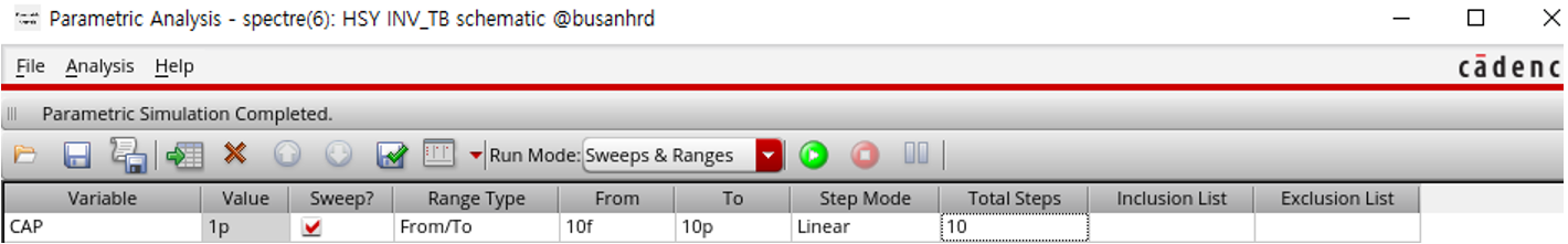> tools-parametric analysis -> 10f~10p까지 10step 설정