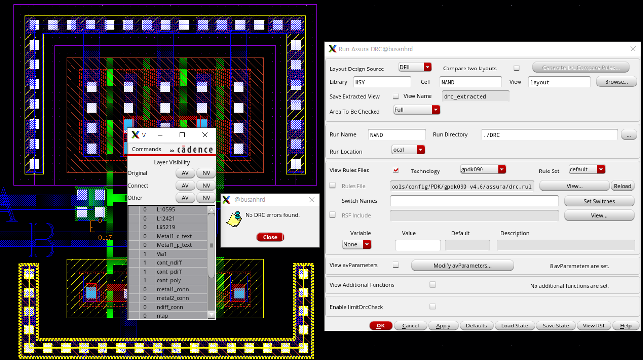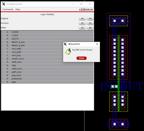 >> DRC(Design Rule Checking), (Layout Versus Schematic) rule에 위배되는 지 체크