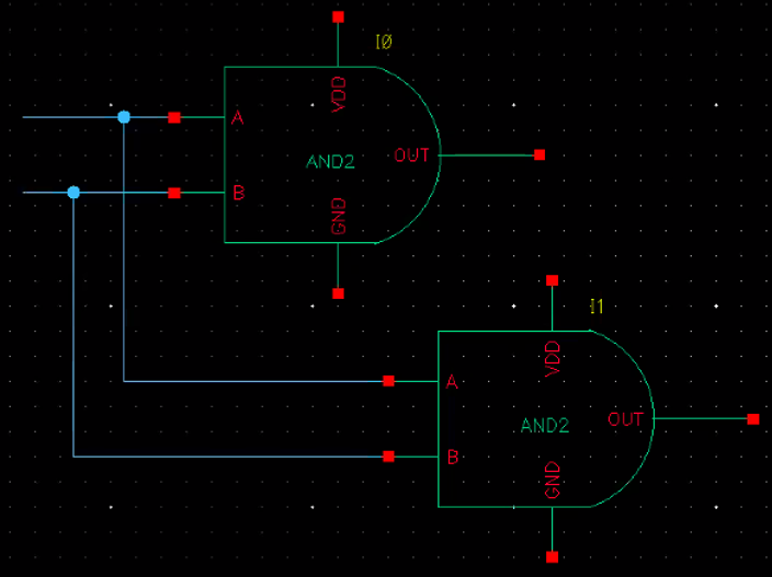 이전에 만들어 둔 NAND + NOT 게이트를 합쳐 이러한 형식으로 모을 수 있다 (PSUB, NWELL 합침)
